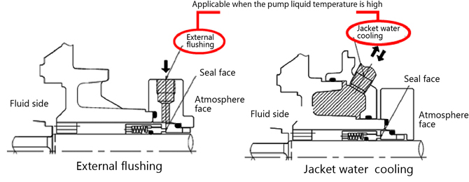 根据目前的机械密封技术,如果需要对高温扬液进行密封,就需如“图2”所示,配备外部水冷或封套水冷,这会产生相应的水冷配管施工费及冷却水循环费。 针对这一问题,如果能开发出适用于高温扬液且无需水冷的机械密封,就能有效削减泵设备整体的初始投资成本/全生命周期成本。 目前,酉岛正在通过将特殊SiC、碳素用于端面材料的方法,减小滑动面积(为了减少端面部分的发热量),开发高温非水冷机械密封,并在实机泵设备上进行验证试验。