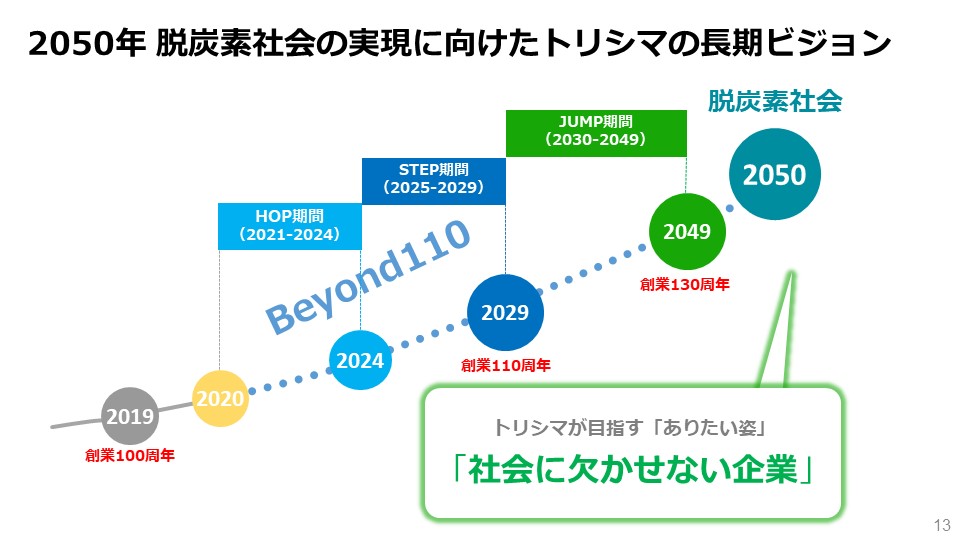 トリシマは変化の激しい昨今において、揺るぎない基盤のもと、中長期先を見据えた経営計画「Beyond110」を策定しました。